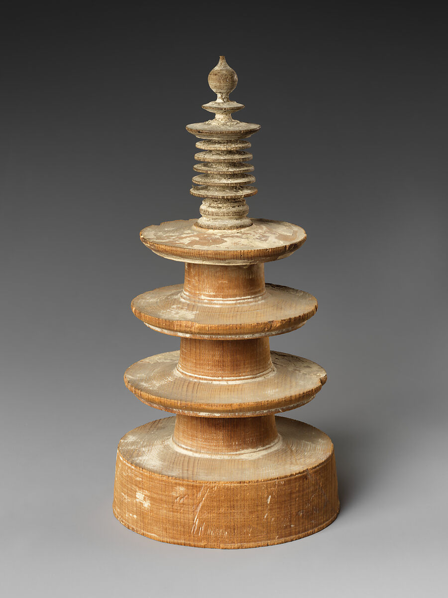One of the “One Million Pagodas” (Hyakumanto) and Invocation. Nara Period (c. 710-794 CE). Japanese cypress (hinoki) sculpture, 8 3/8 in. Sourced from the Metropolitan Museum of Art, Gift of Benjamin Strong, 1930. https://www.metmuseum.org/art/collection/search/44955.