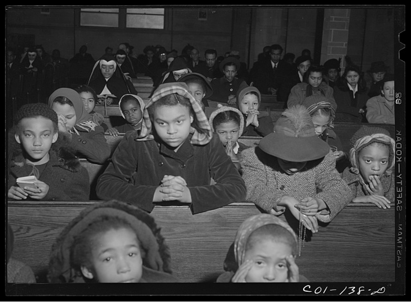 Delano, Jack, photographer. Mass at a Negro Catholic church on the South Side. Chicago, Illinois. Cook County Illinois Chicago, 1942. Mar. Photograph. https://www.loc.gov/item/2017828698/.