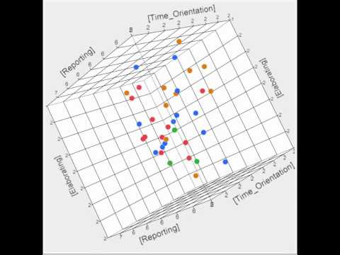From the model's contents, it appears that Evans and Docuscope agree that the idea of a linguistically distinct group of plays called the "Late Plays" is faulty. This is backed initially by the dendrograms, but also in a three-dimensional space with the separation of the green data points. However, I would also agree with Harbage's rational that "Pericles, Cymbeline, The Winter's Tale, and The Tempest are separately grouped... because they share certain characteristics which the grouping helps to emphasize" (Harbage-1969, 1257). With this, the idea of a fundamentally distinct genre of Late Plays is null but grouping them because of their similar traits for emphasis is a valid choice.